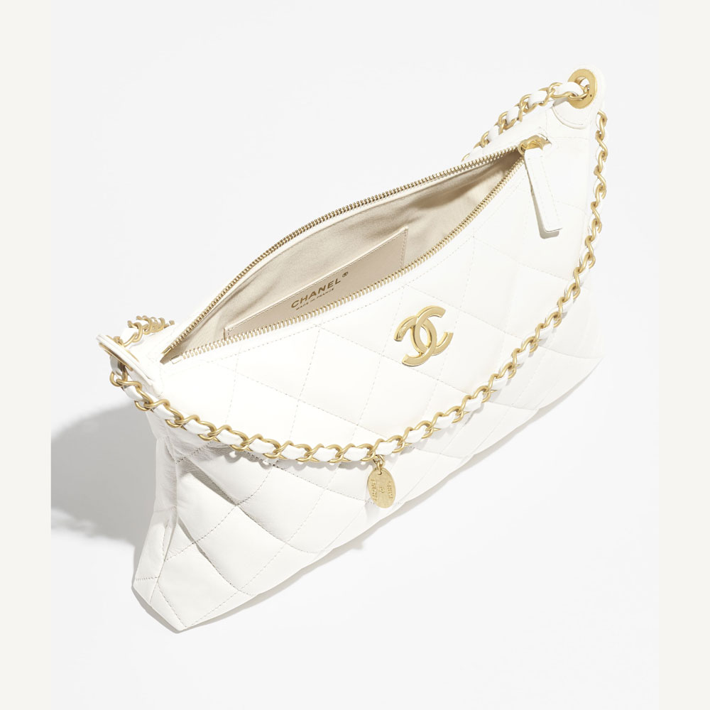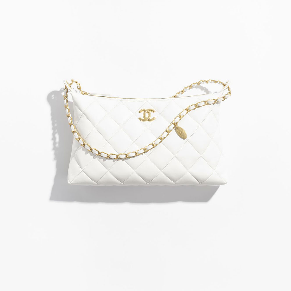The Chanel Large Hobo Bag in White is a timeless accessory that effortlessly elevates any ensemble. Pair this shiny lambskin beauty with minimalist outfits to let its gold-tone metal accents shine. For daytime chic, style it with a crisp white shirt, high-waisted jeans, and neutral loafers. Transition to evening glamour by pairing it with a sleek black slip dress and strappy heels.