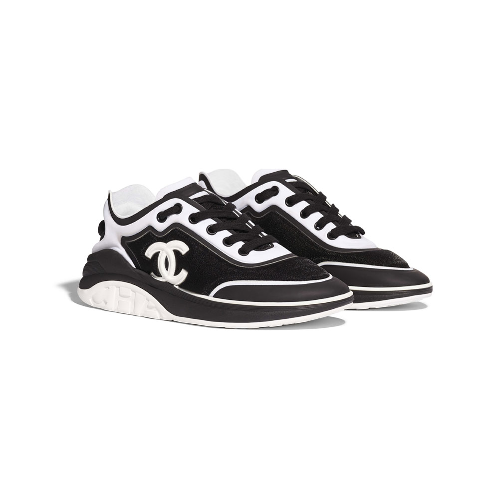 Chanel Mesh Lycra White Black Sneakers G34763 Y53288 C0229