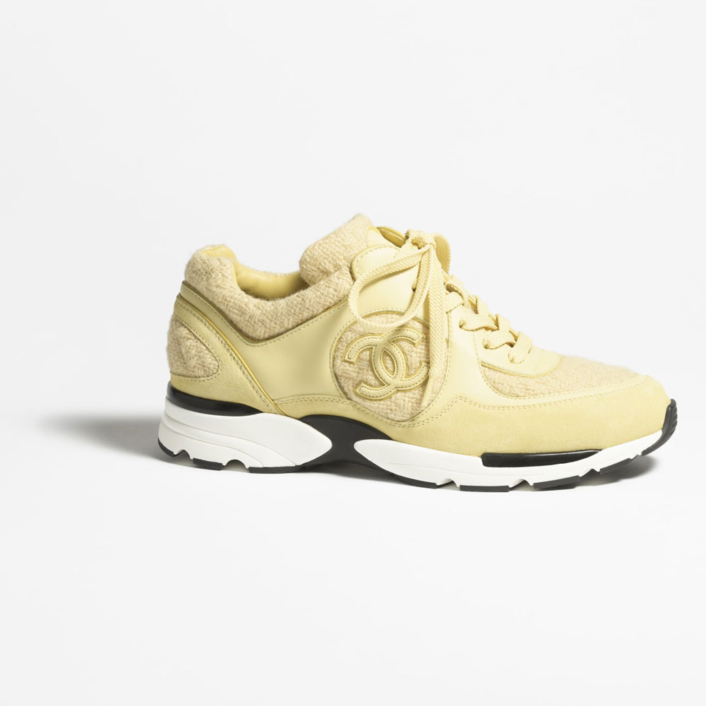 Sneakers Light Yellow & Yellow Wool Tweed, Calfskin & Suede Calfskin