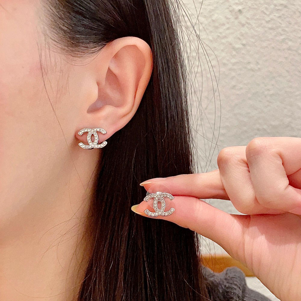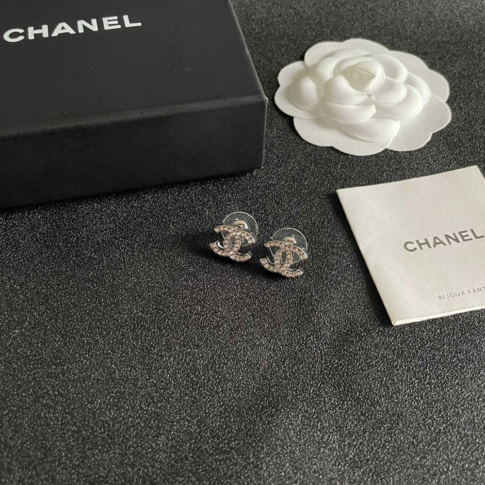 Chanel Swarovski Silver CC Logo Crystal Piercing Earrings J1612