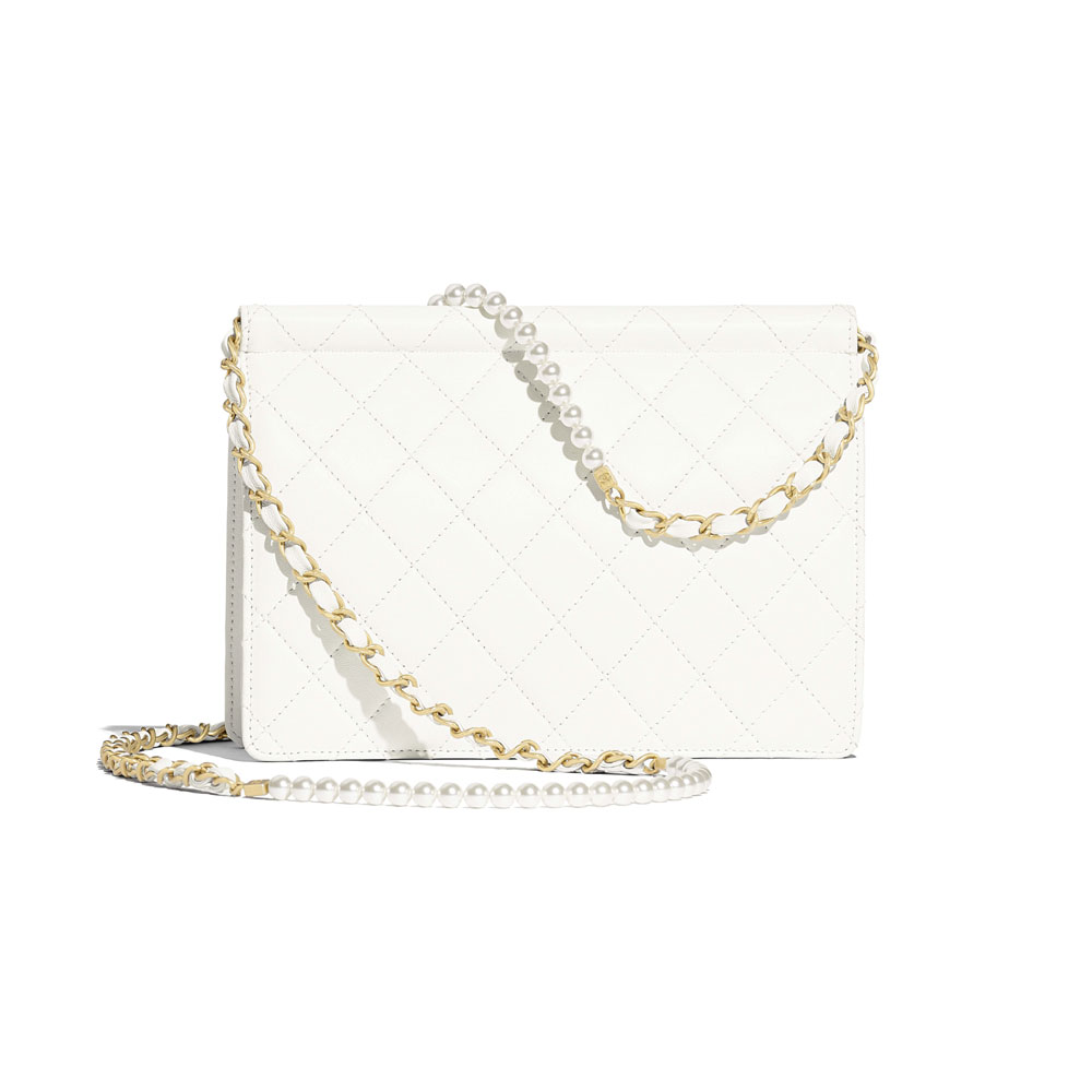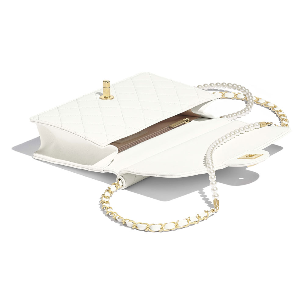 Lambskin, Imitation Pearls & Gold-Tone Metal White Flap Bag