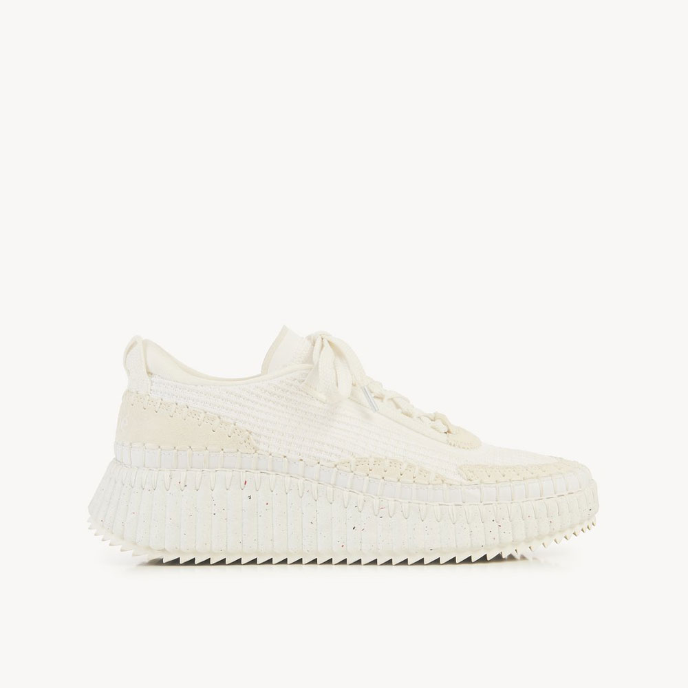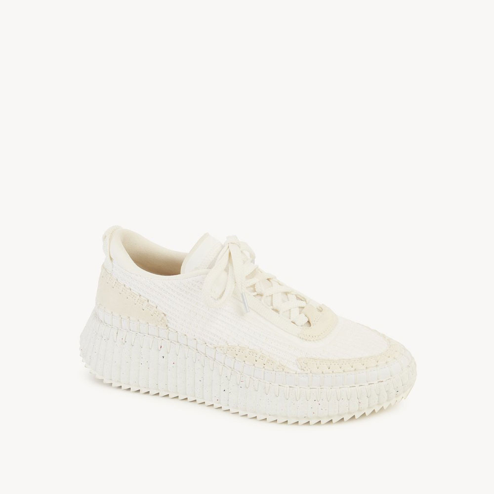 Rooted in the Maison's commitment to sustainability, the eco-designed Nama sneaker is crafted from a rich mix of materials with 40% of its weight made up of recycled debris.The bold, lightweight structure features a hand-stitched mesh upper, showcasing authentic Chloe craftsmanship. Set on a contrasting, ridged sole, this unisex sneaker is ultra-comfortable with a cool, sporty aesthetic. The Chloe logo at the back adds a signature touch.