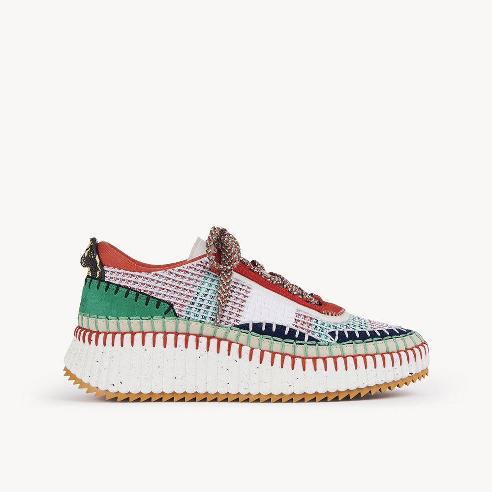 Rooted in the Maison's commitment to sustainability, the eco-designed Nama sneaker is crafted from a rich mix of materials with 40% of its weight made up of recycled debris.The bold, lightweight structure features a hand-stitched mesh upper, showcasing authentic Chloe craftsmanship. Set on a contrasting, ridged sole, this women's sneaker is ultra-comfortable with a cool, sporty aesthetic. The Chloe logo at the back adds a signature touch.