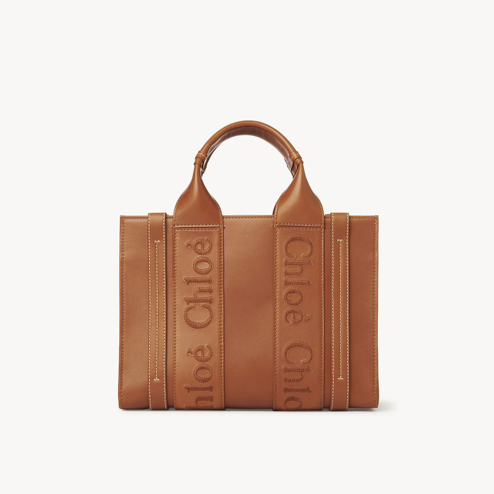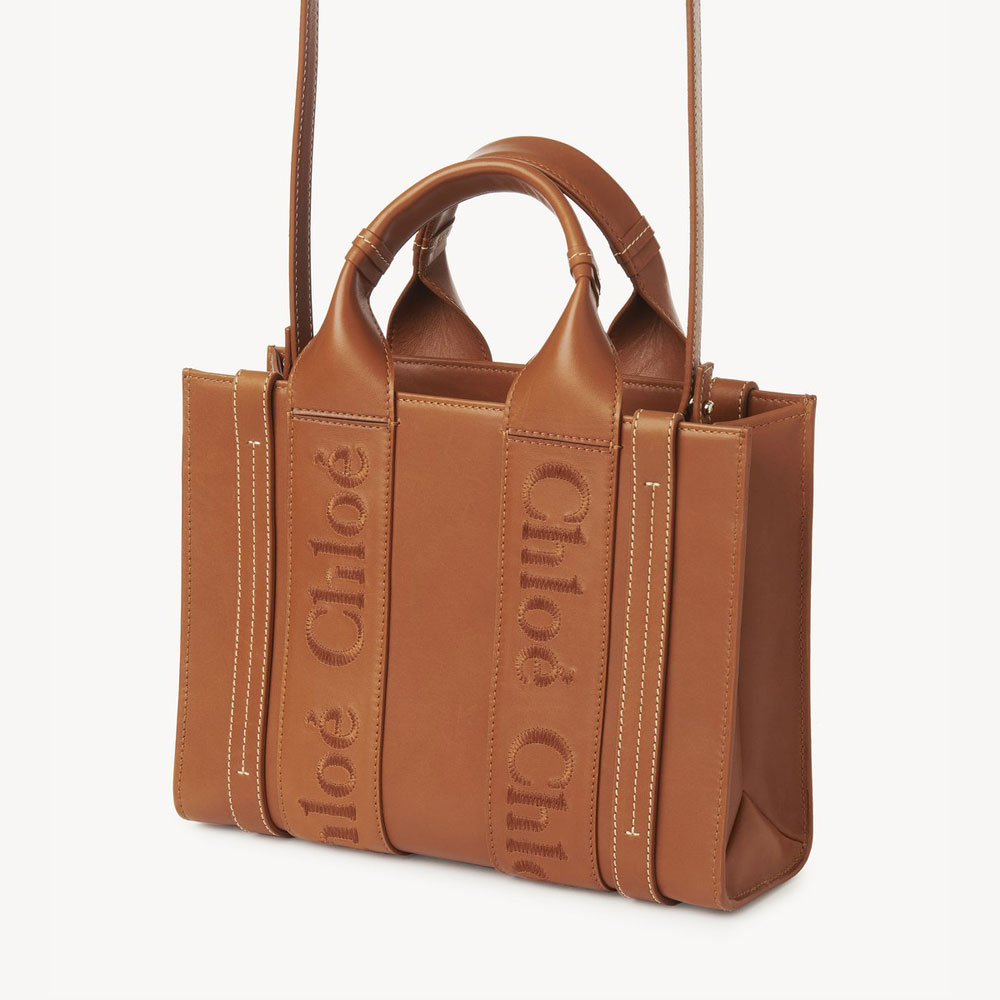 Crafted from smooth calfskin for a natural look with a unique, luxurious feel, this small Woody tote bag is a soft day-to-evening bag with a long, removable strap in addition to the top handles. The roomy inside compartment includes a practical flat pocket in leather for an elevated touch. Linen lining matches a refined finish with a lower environmental impact.Carry this versatile small purse on the arm, shoulder or cross-body.All about Woody...The Woody line is characterized by the signature Chloe logo carried over from the Maison's iconic mules. It showcases a modern, minimalist silhouette ranging from nano to large sizes.