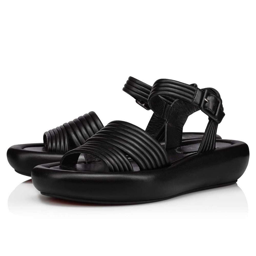 The Manolasummer sandal embodies Maison Christian Louboutin's creativity and savoir-faire. and stands out thanks to a thick rounded sole that gives this summery model a sophisticated and original look. It is finished with straps and is made entirely from a black Nappa leather. A light sandal with a strap that shows off the ankle. this model is both carefree and elegant.