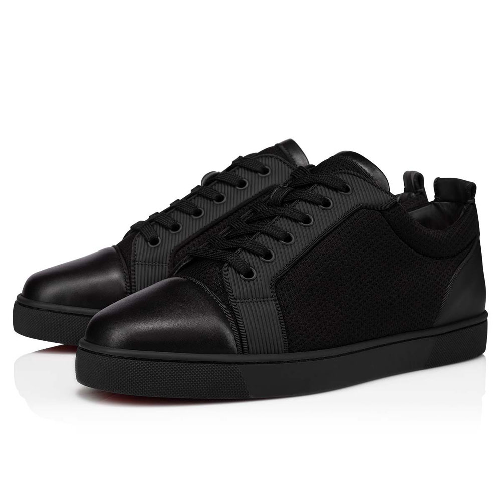 The Varsijunior sneaker features a varsity-inspired graphic style that is both sporty and elegant. This round-toed model is mounted on a black rubber sole and features a striking blend of textures. Its black vamp combines embossed rubber with smooth calfskin and mesh. It is enhanced by a 3D-effect CL monogram on the heel counter.