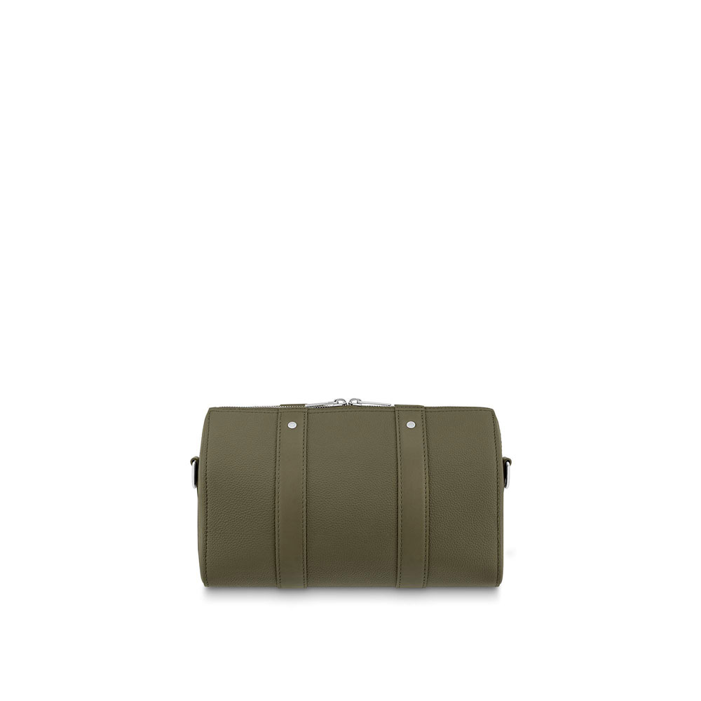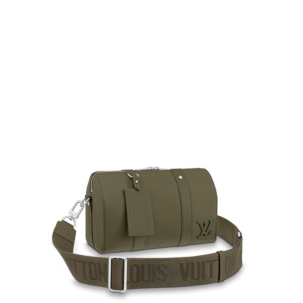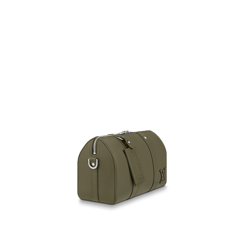 The City Keepall now comes in LV Aerogram leather. an extra-fine grade of cowhide dyed a handsome shade of khaki. Compact and easy to carry. it's brimming with signature details. from the tone-on-tone metal LV monogram to the leather tag and the signed Jacquard strap. An ideal everyday bag infused with contemporary elegance.