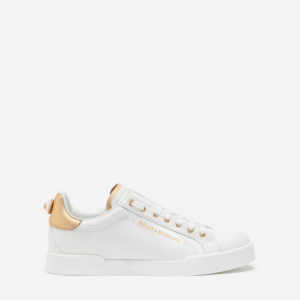 The forerunner of all Dolce&Gabbana sneakers. the Portofino sneakers come made entirely from calfskin nappa with light-gold plated metal DOLCE & GABBANA lettering and branded pearl detailing on the heel.