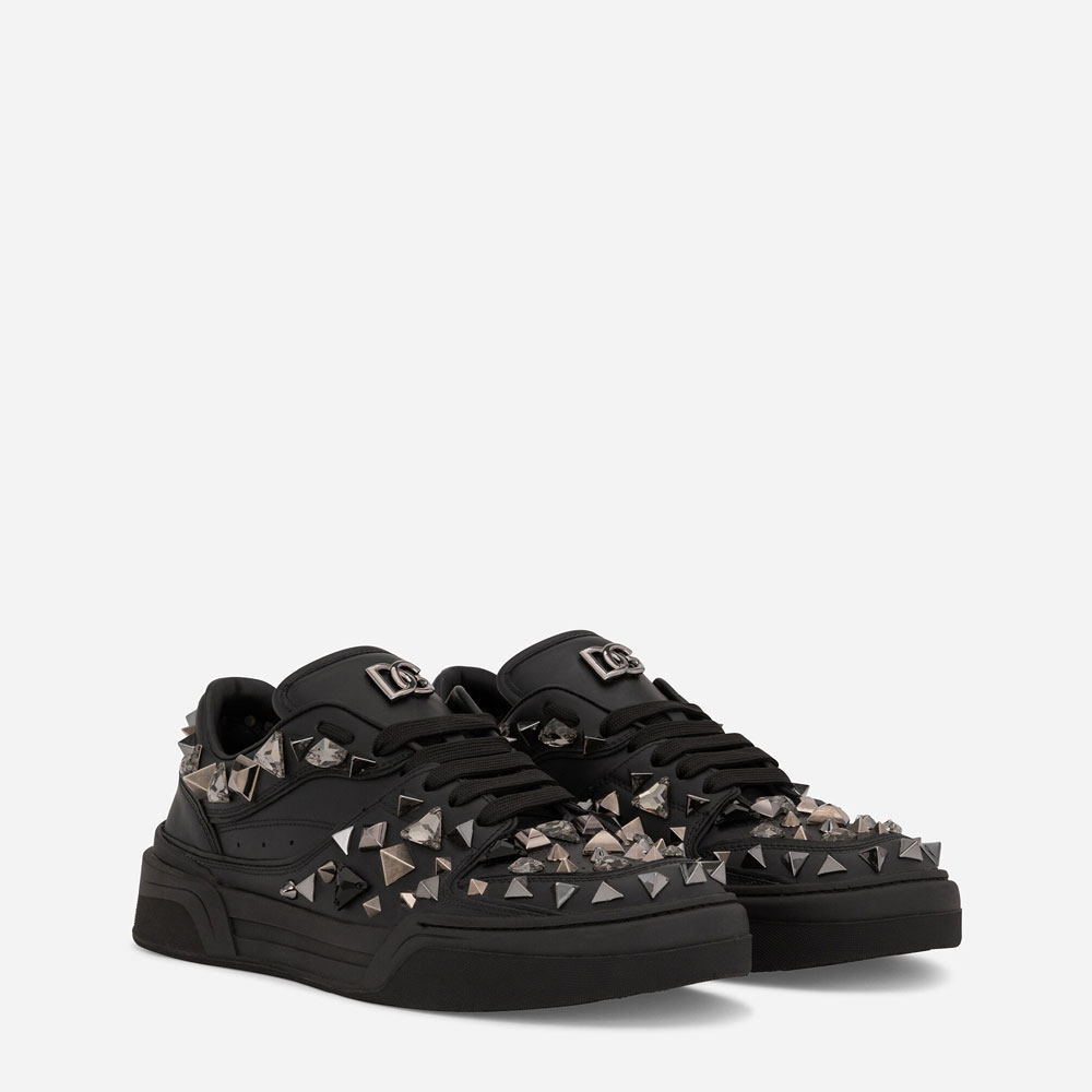 Men's DG Calfskin nappa New Roma sneakers studs in Black CS2036AY8578B956