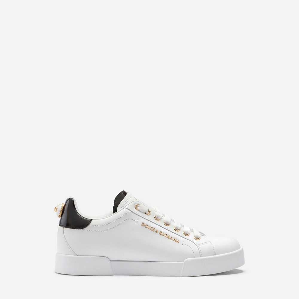 The forerunner of all Dolce&Gabbana sneakers. the Portofino sneakers come made entirely from calfskin nappa with light-gold plated metal DOLCE & GABBANA lettering and branded pearl detailing on the heel.