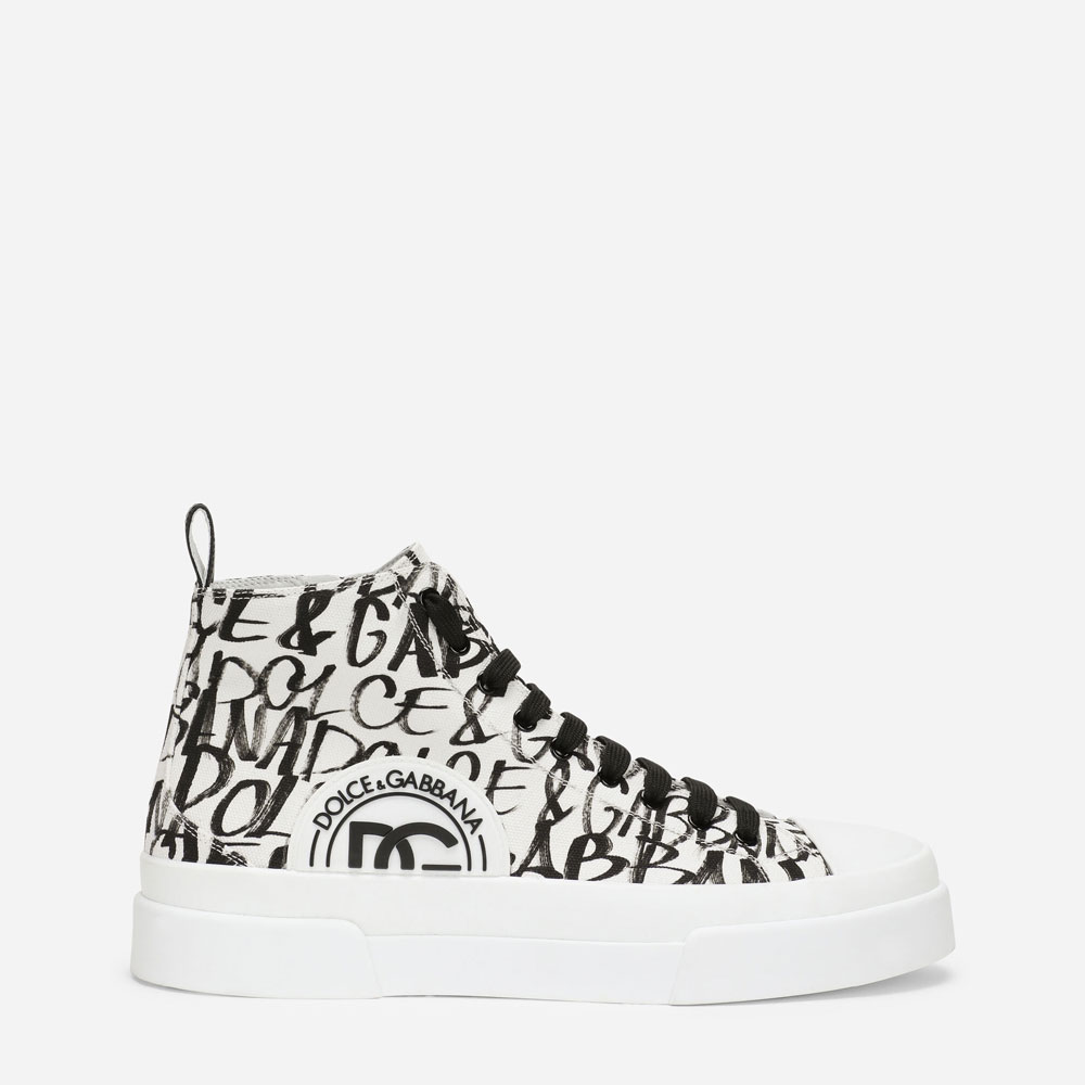 The iconic elements and signature details of the fashion house have been reworked with a contemporary edge. Flaunting bold. Urban style. These new canvas Portofino Light mid-top sneakers feature the new all-over logo print. Perfect for everyday use. They feature the new rubberized DG logo and have the side zip to ensure the utmost comfort.