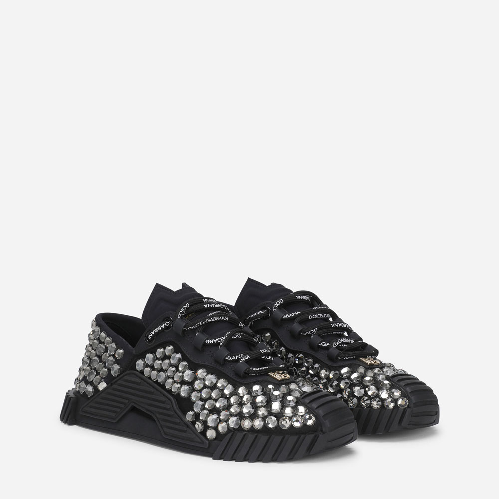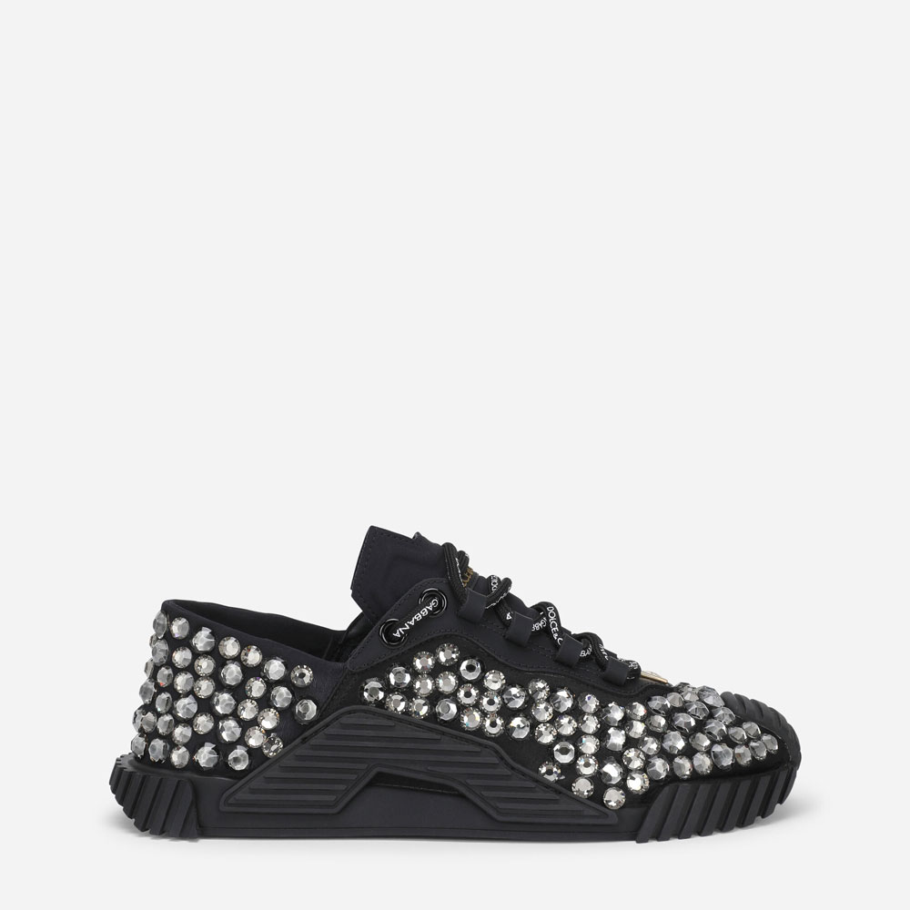The NS1 sneakers are coming in new materials. Made from satin. They come covered in shiny rhinestone applique and with the DG logo.