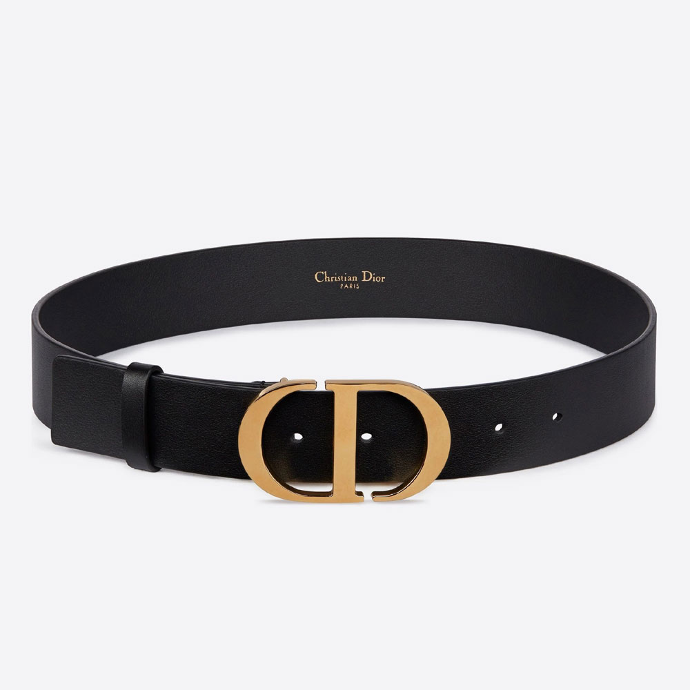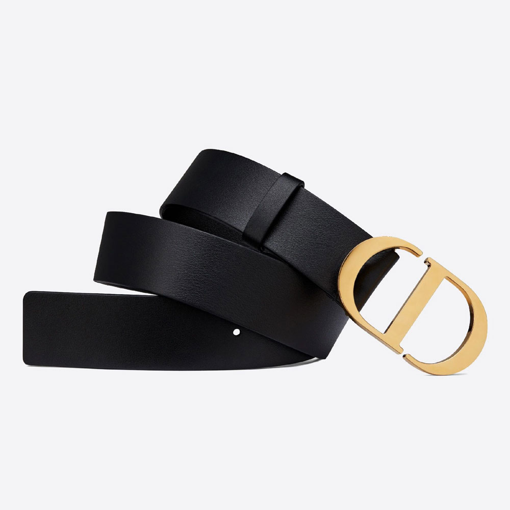 The 30 Montaigne belt, inspired by the emblematic 30 Montaigne bag, is crafted in smooth black calfskin and features a gold-finish metal 'CD' buckle. Delicately highlighting the waist, the classic accessory will pair perfectly with jeans, a skirt or a dress.
