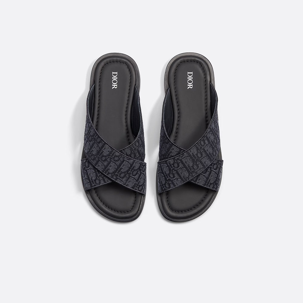 the Dior Alias sandal is a laid-back yet refined creation. Crafted in black Dior Oblique jacquard. The style showcases a cross-strap design.
