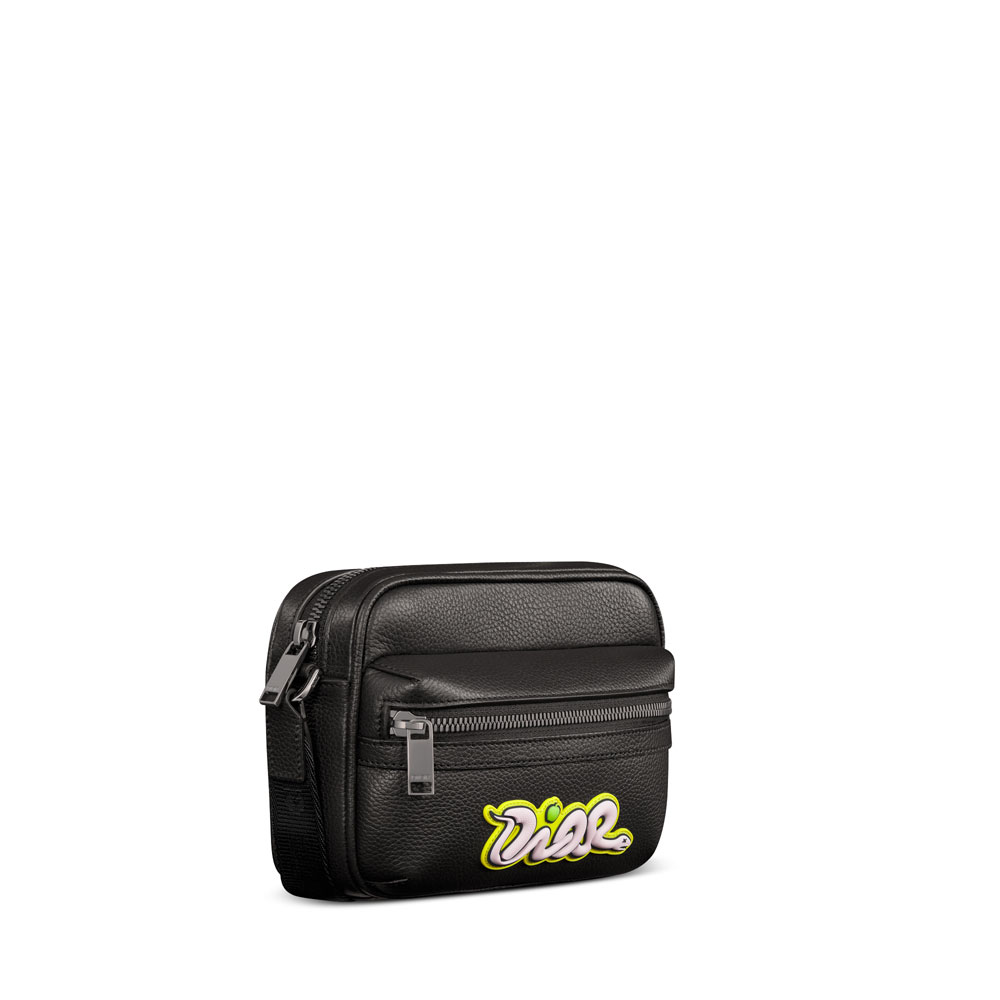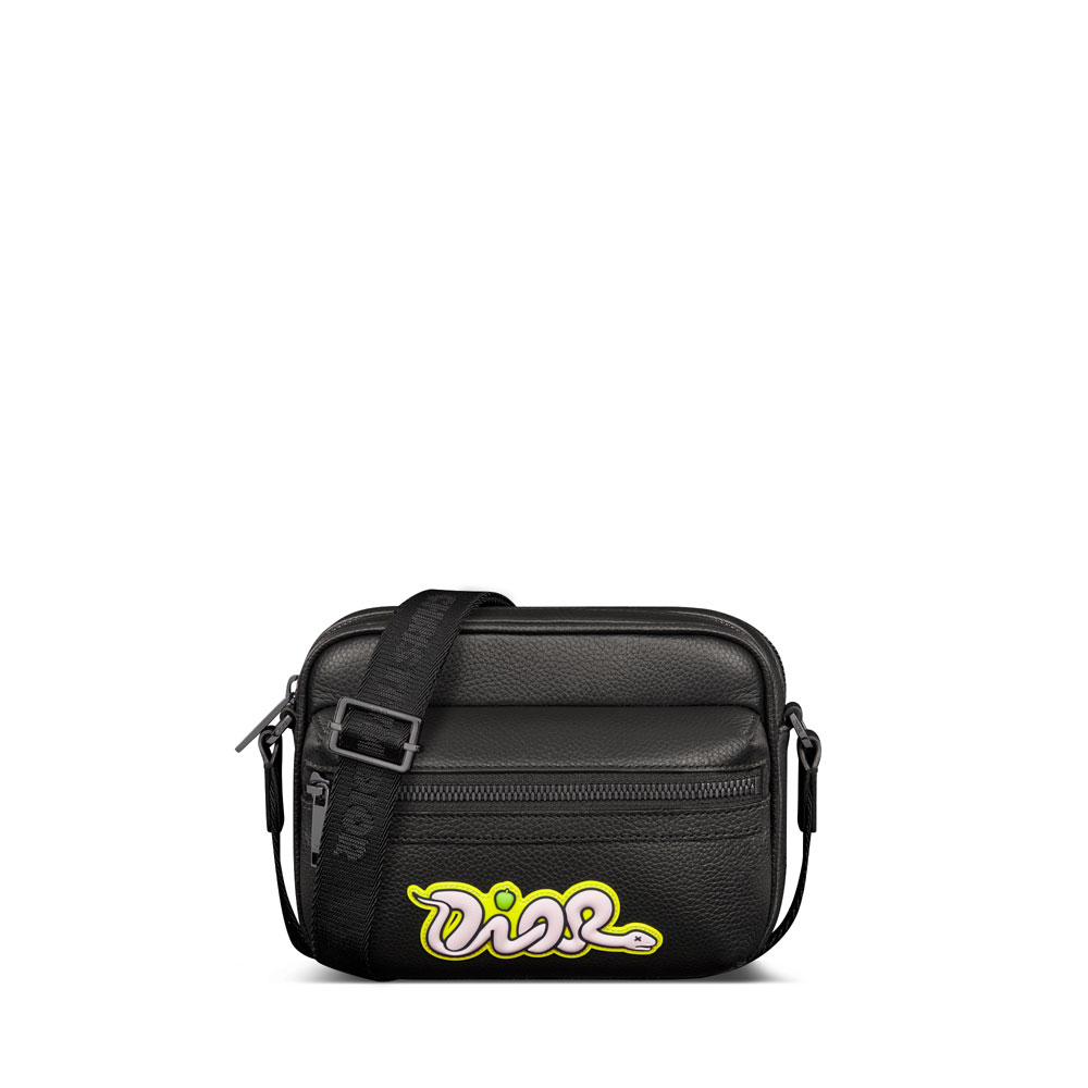 The Rider 2.0 zipped messenger bag, part of the limited edition DIOR AND KAWS collaboration, combines functionality with a sleek design for everyday use. Crafted with black grained calfskin, this miniature shoulder bag showcases vibrant accents through its signature rubber emblem