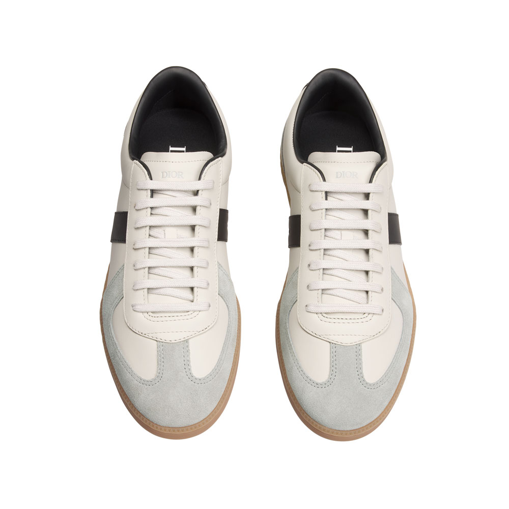 The new Fall 2025 B01 Matchpoint sneaker revives a classic design with contemporary elegance. Featuring premium black/white calfskin with gray suede accents.