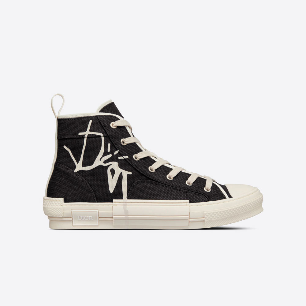 The B23 sneaker is part of the exclusive collaboration with CACTUS JACK. Crafted in black cotton canvas. the style is enhanced by a cream CACTUS JACK DIOR signature. The design maintains timeless sneaker codes. including laces and eyelets on the front. a rubber sole. a rounded. reworked and reinforced toe and a rear tab. It is enhanced with tonal details on the sides including a contrasting 'DIOR' signature. The sneaker will pair easily with any casual outfit and can be worn with other CACTUS JACK DIOR creations.