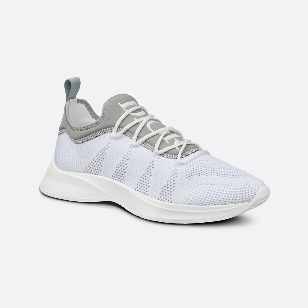 This season, the B25 sneaker is reimagined in a variation combining technical expertise and a couture feel. Crafted in gray neoprene and white technical mesh, it is embellished with a 'DIOR' signature on the tongue and an ultralight rubber sole. The sneaker can be coordinated with any casual or sportswear attire.