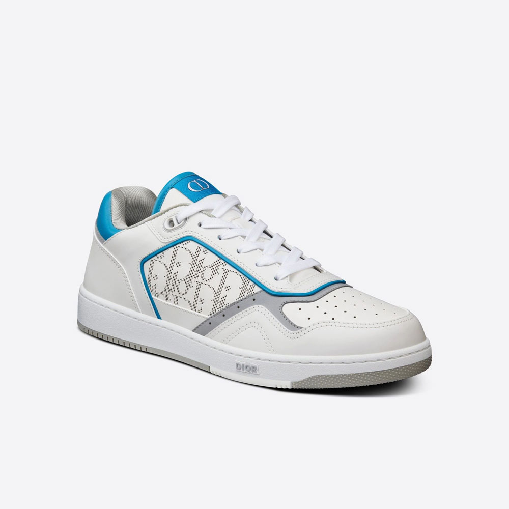 The B27 low-top sneaker is already a House essential. Crafted in white and light blue smooth calfskin, the style is adorned with white Dior Oblique Galaxy leather inserts on the sides. The sneaker is enhanced with CD Icon eyelets as well as numerous emblematic details on the two-tone rubber sole, tongue and back. The low-top sneaker will enhance any favorite outfit.