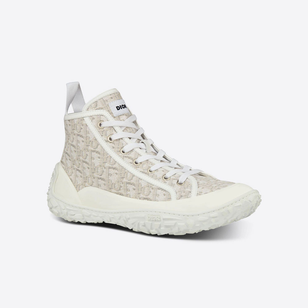 The seasons new B28 high-top sneaker is a staple collection item. Crafted in off-white Dior Oblique jacquard, it features a contrasting white DIOR signature rubber sole, displaying a unique contour. The high-top shoe will lend an emblematic and modern touch to any outfit.