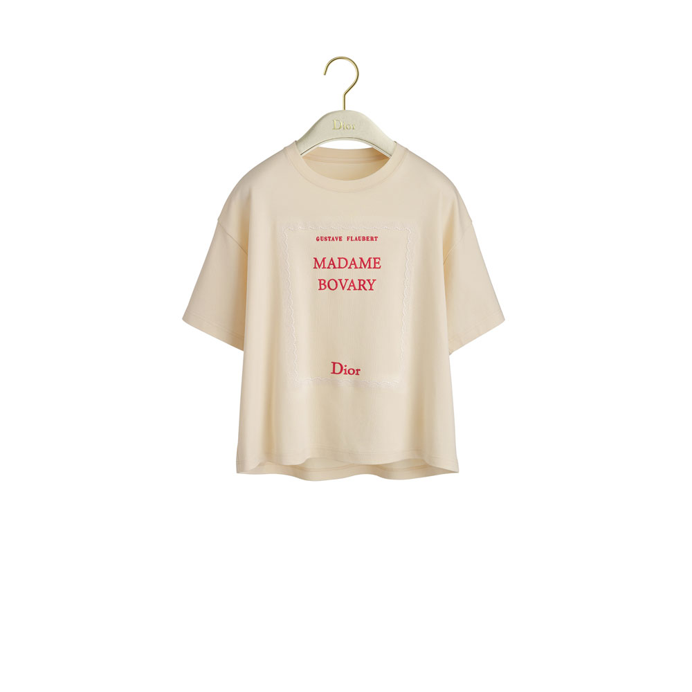 Dior Book Cover Oversized Cropped T-Shirt Beige Red Cotton Jersey 623T12A4282 X1830