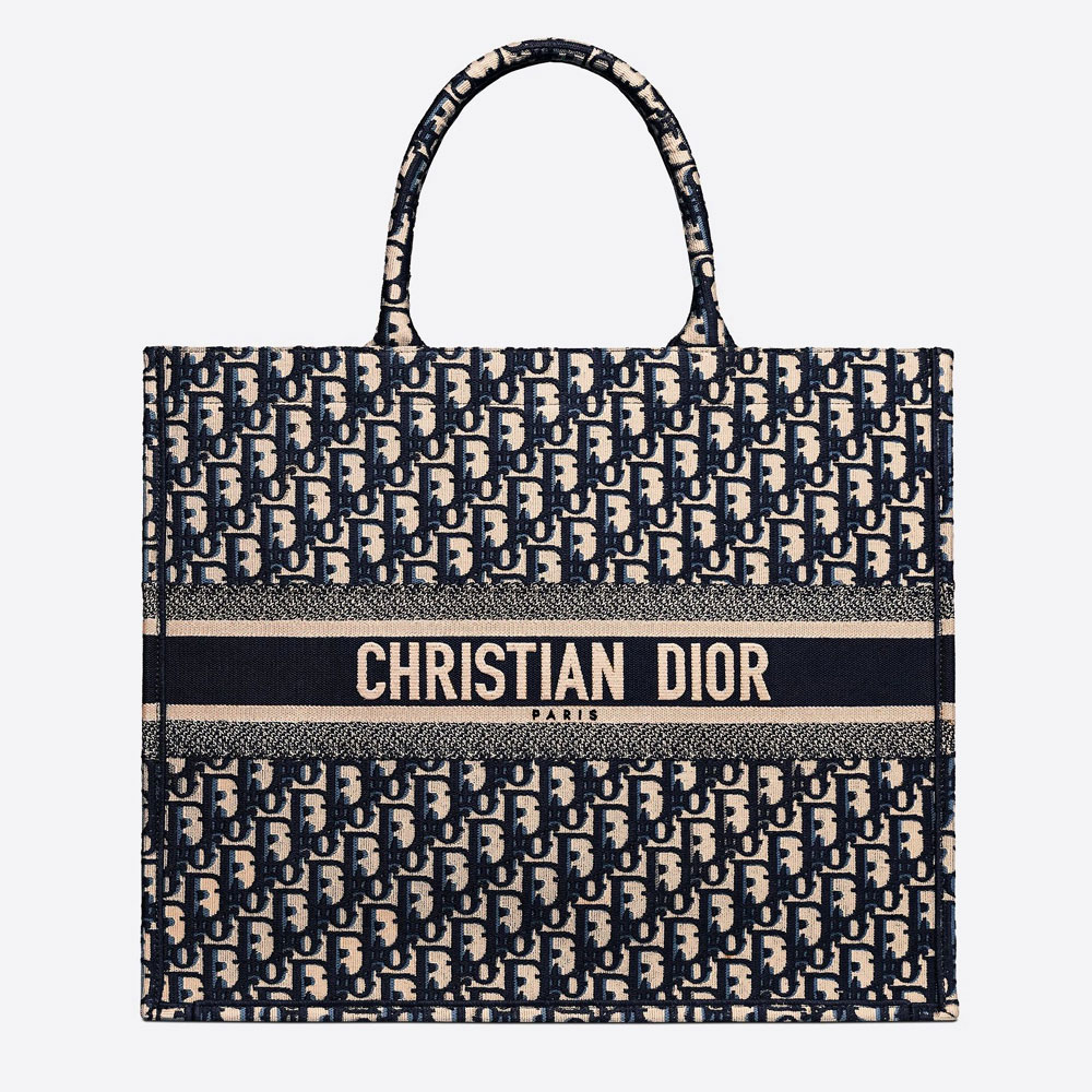 Introduced by Maria Grazia Chiuri, Creative Director for Christian Dior, the Dior Book Tote has become a staple of the Dior aesthetic. Designed to hold all the daily essentials, the style has been fully embroidered with a blue Dior Oblique motif. Adorned with the CHRISTIAN DIOR signature on the front, the bag exemplifies the Houses signature savoir-faire and may be carried by hand or worn over the shoulder.CHRISTIAN DIOR signature on the front