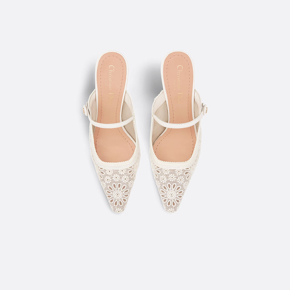 The Dior Capture mule is a delicate creation that combines elegance and modernity. The transparent mesh style showcases white Saint-Gall embroidery.