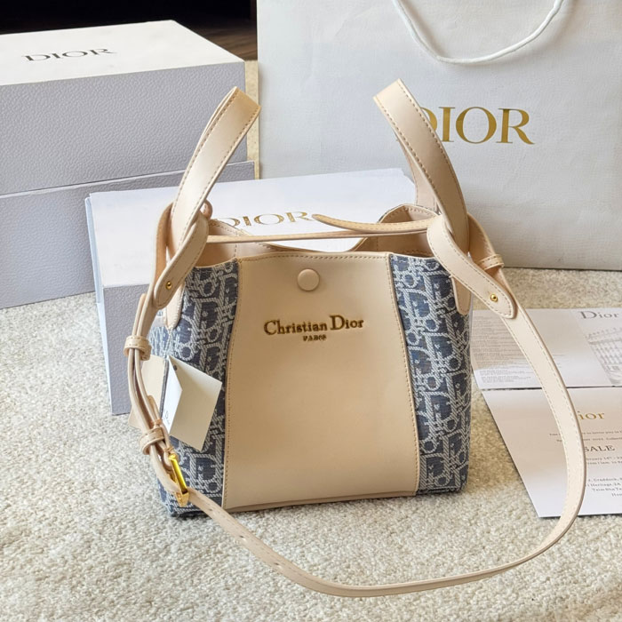 The D-Bubble bucket bag is a highly modern and elegant creation. An invitation to discover Grecian artistry. the style is fully embroidered with a blue and white Cornely effect. and is further embellished with a 'CHRISTIAN DIOR PARIS' signature on the front. Its wide shoulder strap allows the bag to be carried by hand or worn over the shoulder while the handmade tassels add movement to the design. Size:16 x 25 x 16CM