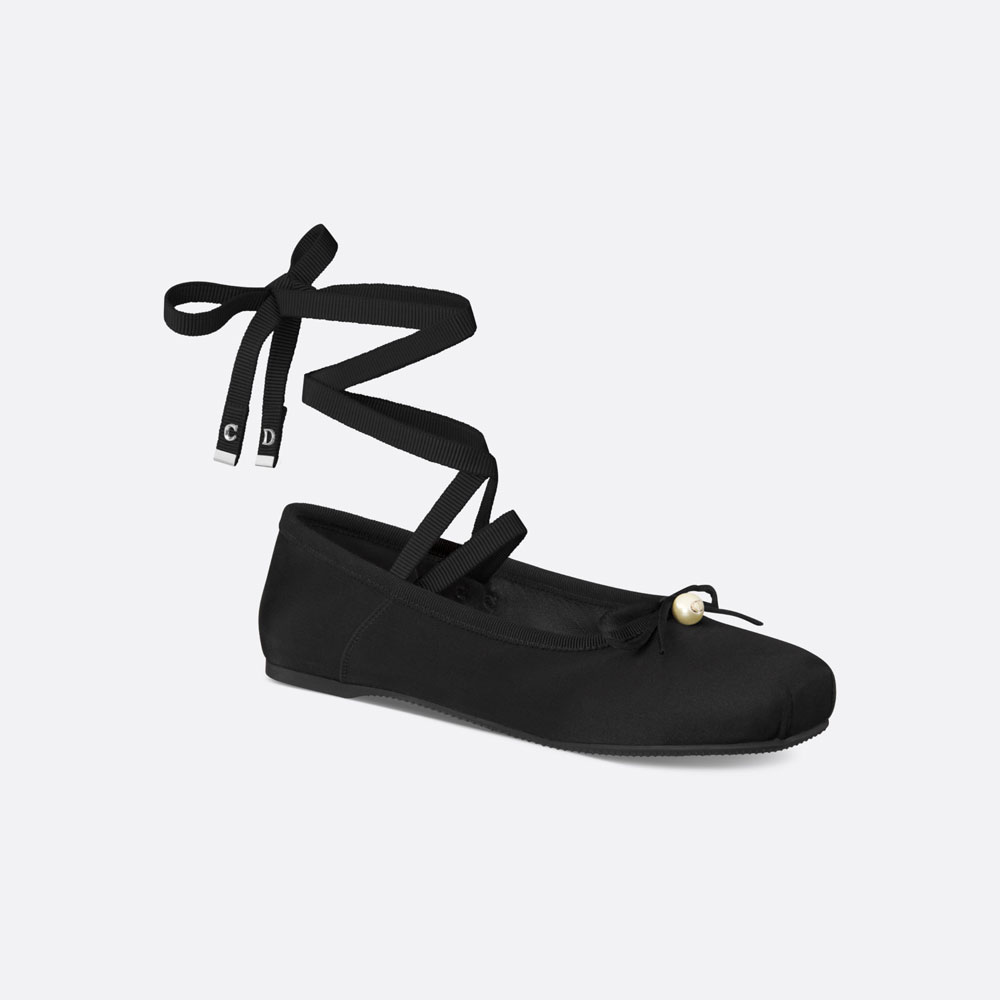Dior D-Joy Ballet Flat Black Satin and Grosgrain KDB880SGG S900
