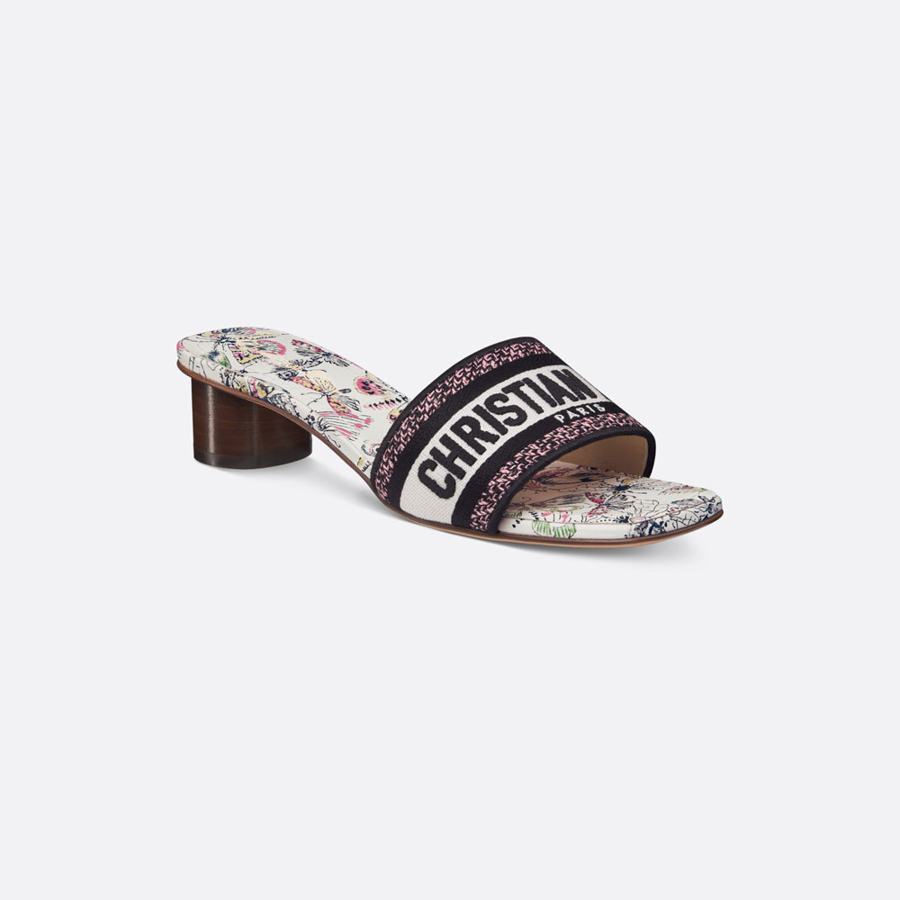 Dior Dway Heeled Slide White Cotton Embroidered KCQ902FBM S43L