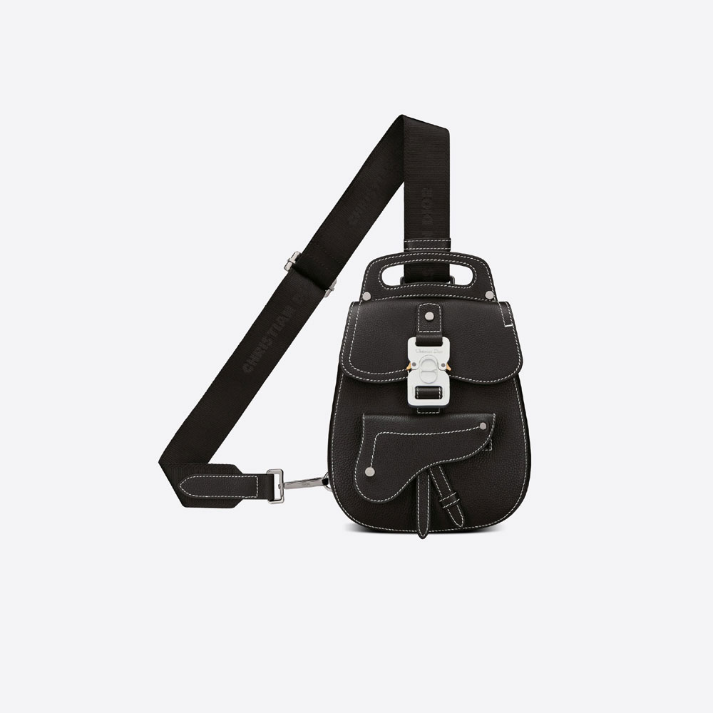 The Gallop sling bag is a modern and unique interpretation of the iconic Saddle codes. Crafted in black grained calfskin with contrasting topstitching. it has a main flap compartment that can house all the essentials and a Saddle flap that conceals a front patch pocket. The 'Christian Dior' jacquard adjustable shoulder strap allows the bag to be worn over the shoulder or crossbody. Size:19 x 27.5 x 11.5�cm
