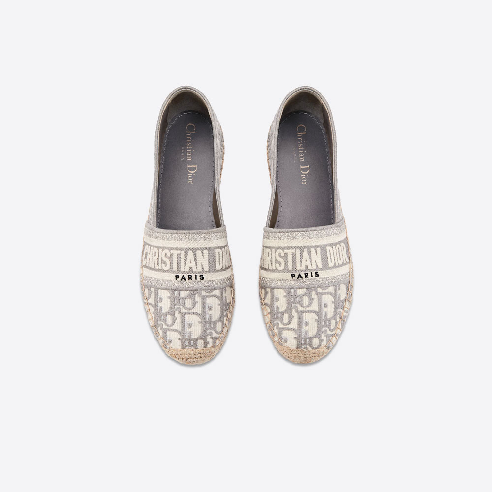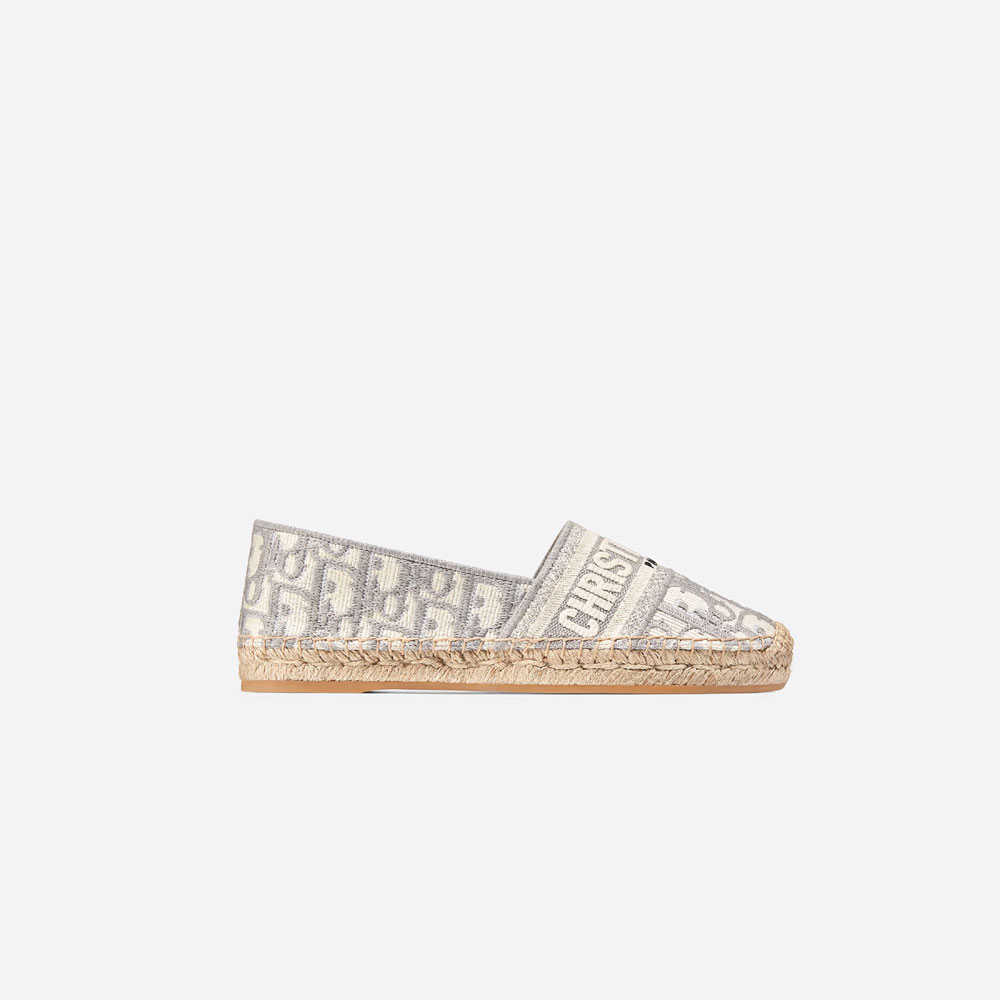 The Dior Granville espadrille highlights the hallmark Dior Oblique motif. Crafted in gray stone embroidered cotton