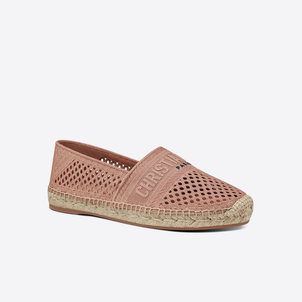 The Dior Granville espadrille is an elegant and relaxed creation. The style is crafted in an openwork mesh-like nude embroidered cotton. Emblematic House details like the tonal Christian Dior signature on the upper embellish the design, while the rope sole is handmade according to traditional methods. Tied around the ankle, the shoe will elevate any seasonal look and can be paired with other mesh creations of the collection.
