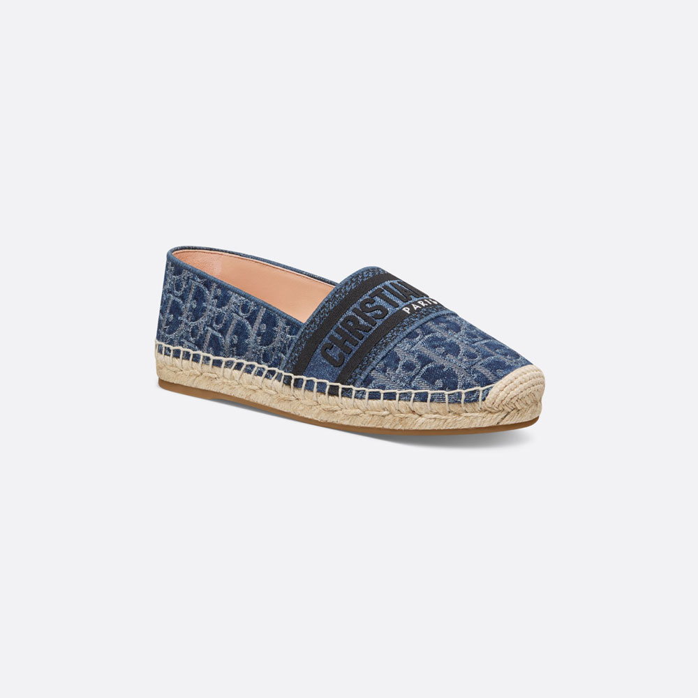 The Dior Granville espadrille highlights the hallmark blue Dior Oblique motif. Crafted in embroidered cotton denim, the style revisits the House's iconic motif with the modern appeal of an irregular stonewashed effect. The upper is adorned with iconic House details like the Christian Dior Paris signature. The shoe has a traditionally hand-made rope sole and may be coordinated with other Denim Dior Oblique creations from the collection.