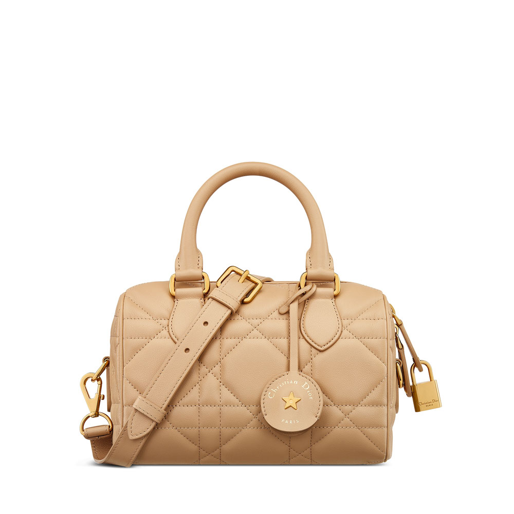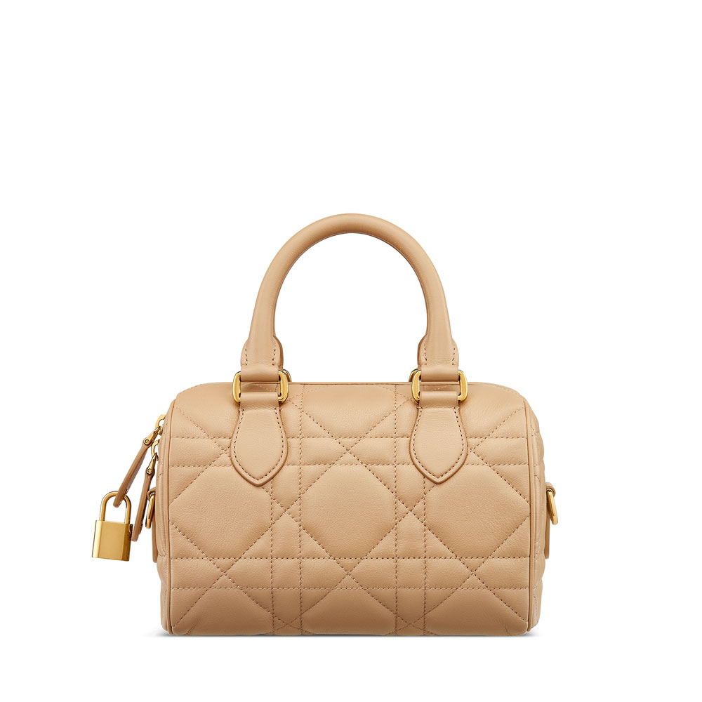 The Dior Groove 20 combines sophistication with contemporary aesthetics, crafted under Maria Grazia Chiuri's vision. This piece highlights artisanal craftsmanship through its quilted Macrocannage texture, complemented by a signature leather key tag adorned with an antique gold star and Christian Dior Paris emblem. Functionality meets style with a zip-secured compartment accessed via the included key, enhanced by dual internal storageslip and zip pockets for organized essentials. Versatile carrying options include top handles and an adjustable crossbody strap, transforming this piece into a practical yet chic everyday companion. Crafted from supple calfskin with lambskin accents and lined for comfort, the design emphasizes refined tailoring through its structured silhouette and polished hardware details.