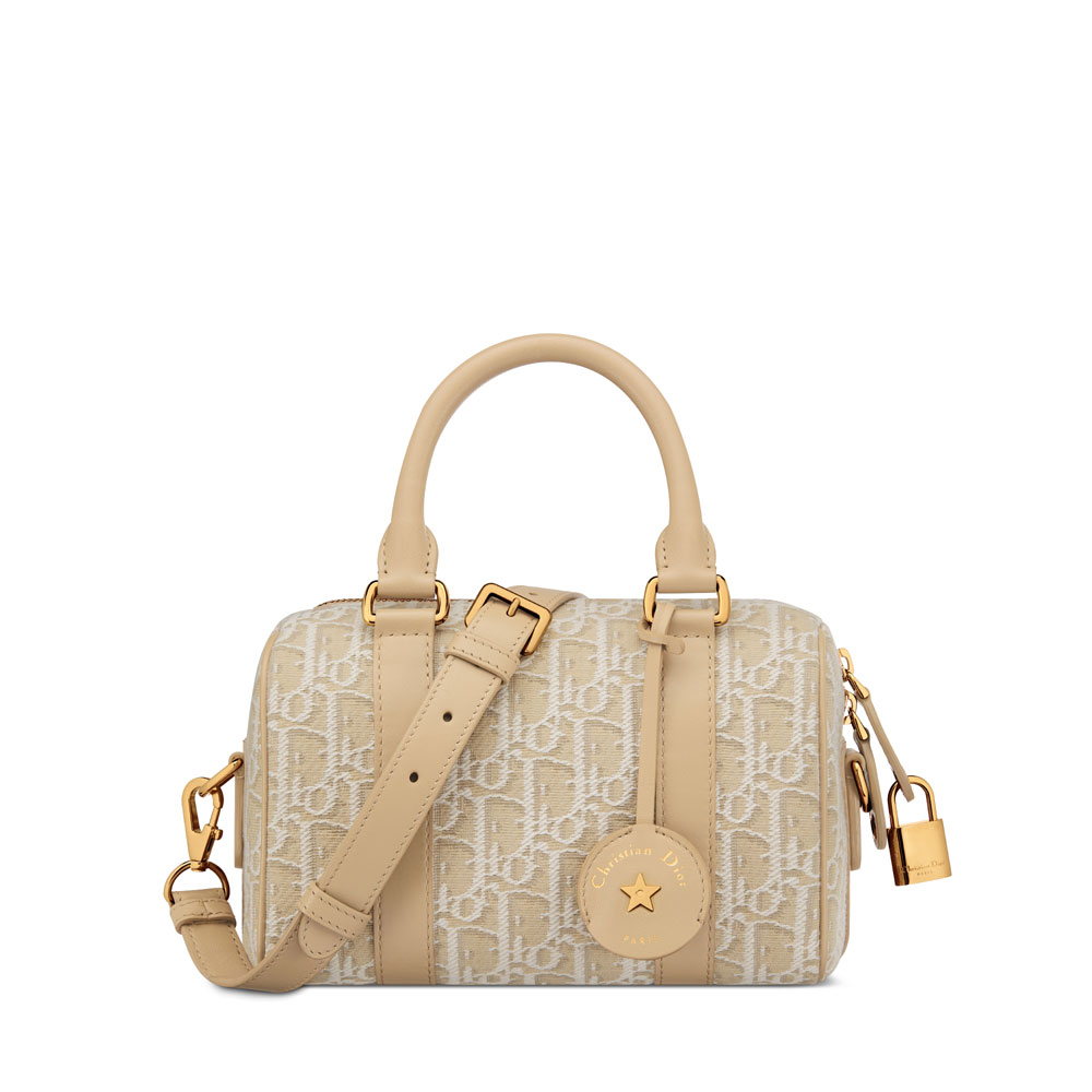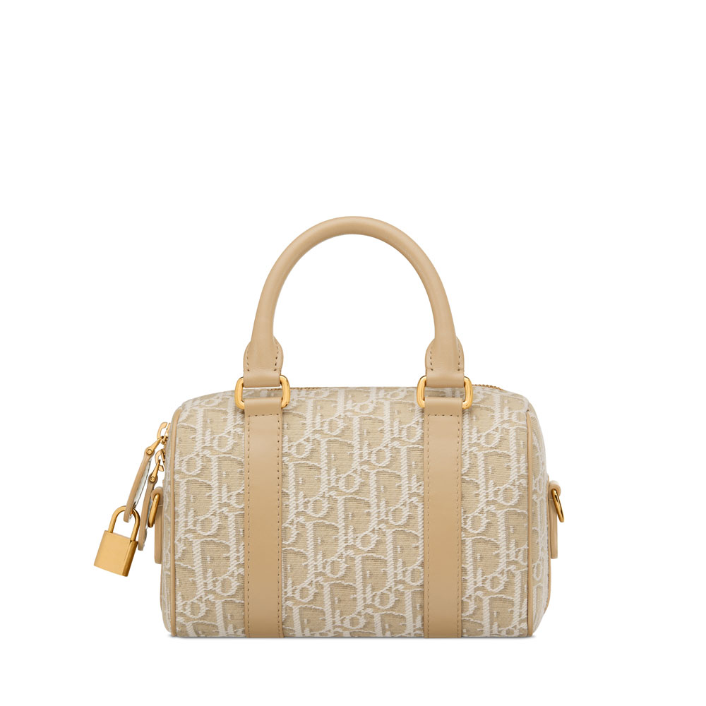Dior Groove 20 by Maria Grazia Chiuri showcases a sleek contemporary design featuring signature jacquard fabric. The clutch incorporates a Christian Dior Paris brass key tag with gilded star detailing, complemented by dual closure mechanisms. A concealed zipper compartment houses essentials, while interior slip and zip pockets enhance organizational capacity. Crafted with supple calfskin accents and technical fabrics, the bag offers multiple carrying options including adjustable crossbody straps and ergonomic top handles. Finishing touches include antique gold-tone metal accents and signature branding elements.