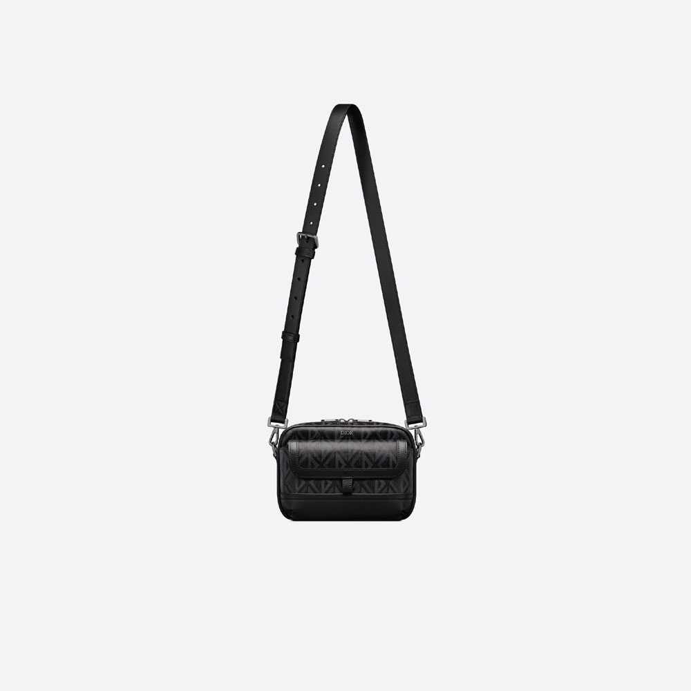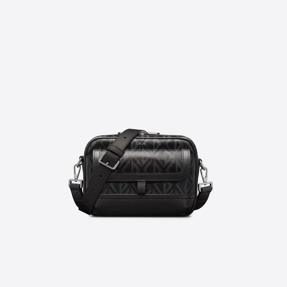 the Dior Hit The Road messenger pouch combines modernity with the House's couture spirit. Crafted in black CD Diamond canvas inspired by House archives and smooth calfskin. It boasts a 'DIOR' signature on the front. The design is distinguished by a spacious main compartment and a large flap pocket on the front. Featuring an adjustable and removable shoulder strap. The practical pouch will lend the finishing touch to all casual outfits.