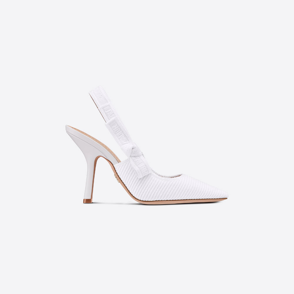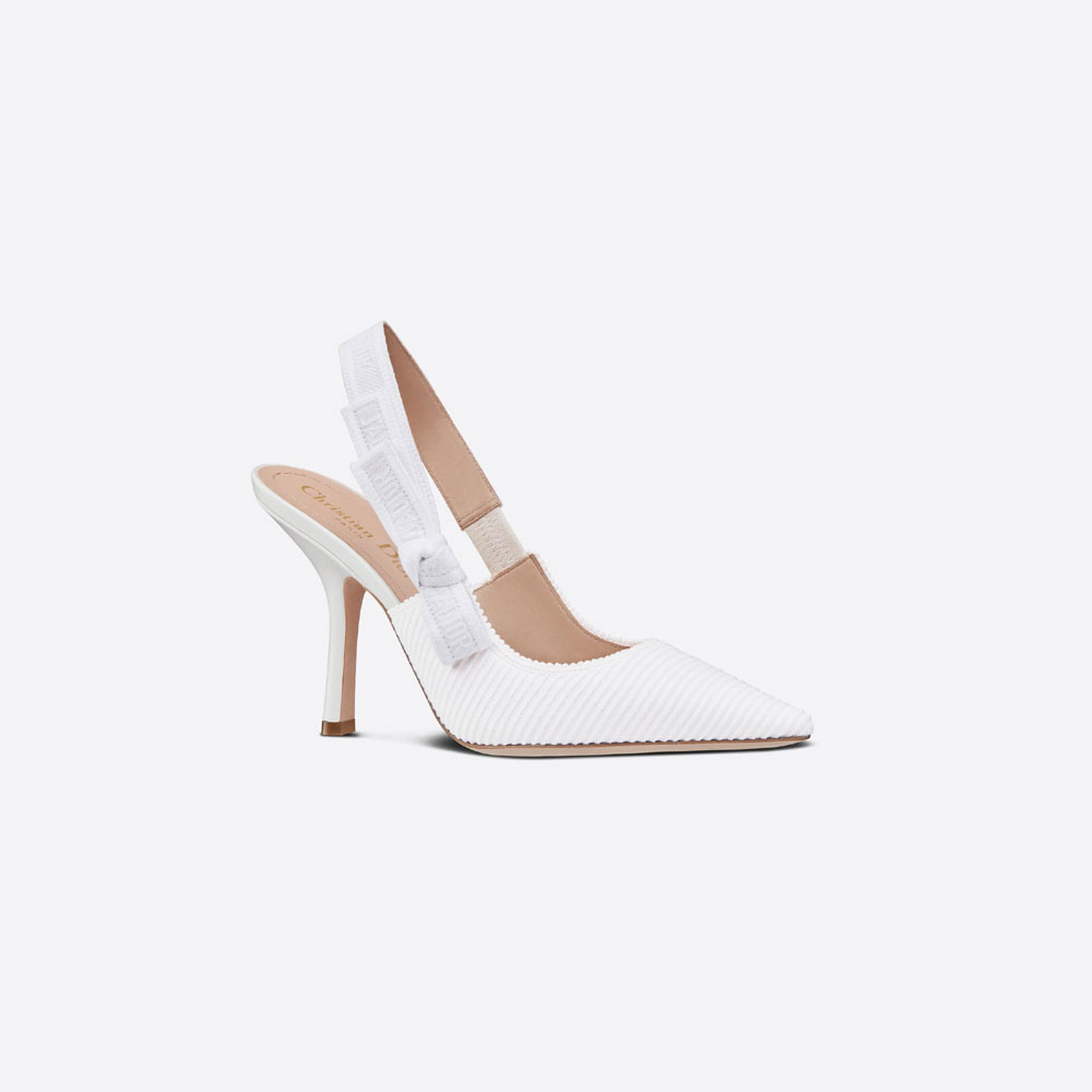 The Jadior slingback pump is a prime example of Diors savoir-faire. Crafted in Christian Diors Italian ateliers. The pointed-toe silhouette is distinguished by white embroidered cotton