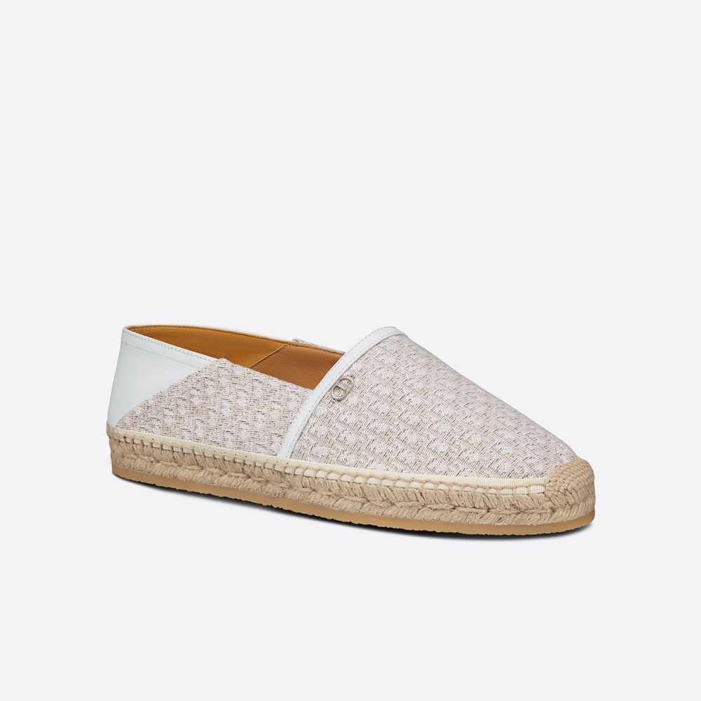 The Dior Paradise espadrille has both a casual and elegant design. The off-white Dior Oblique jacquard upper is embellished with a calfskin lining and details. The style features a rope sole, hand-assembled according to traditional craftsmanship, and a CD Icon signature on the front. With its foldable heel, the espadrille may be worn as a mule or closed as a shoe and will elevate any relaxed look.