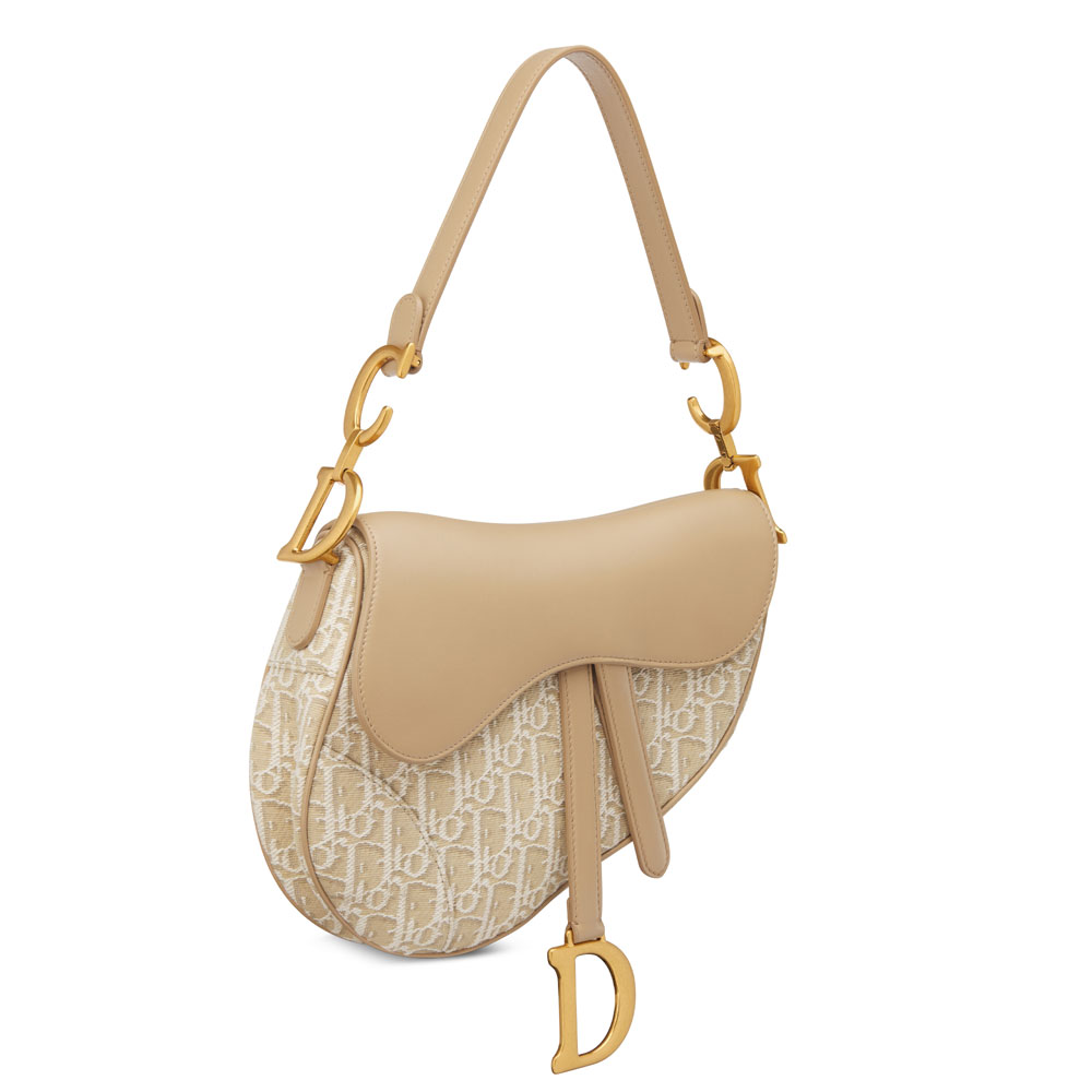 Maria Grazia Chiuri reimagines the timeless Saddle bag with a contemporary twist. Crafted with Dior Oblique jacquard and smooth calfskin, the design highlights a D-shaped stirrup strap, magnetic closure, and antique gold-toned CD motifs on the handles. A slim, adaptable strap enables hand carry, shoulder wear, or crossbody versatility.