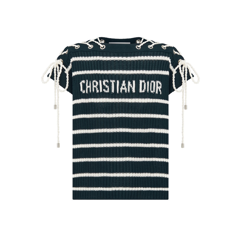 This navy blue Dior clothing women piece shines as a versatile layering essential. Pair its cropped silhouette with high-waisted white linen trousers for daytime sophistication, or tuck it into a flowing midi skirt with Dior's signature floral prints.
