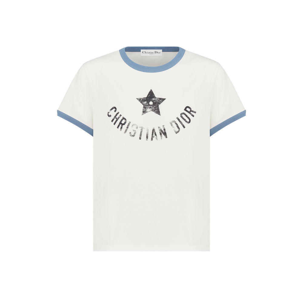 Part of the Dioriviera collection, this tee offers a modern aesthetic through its clean white cotton jersey base.