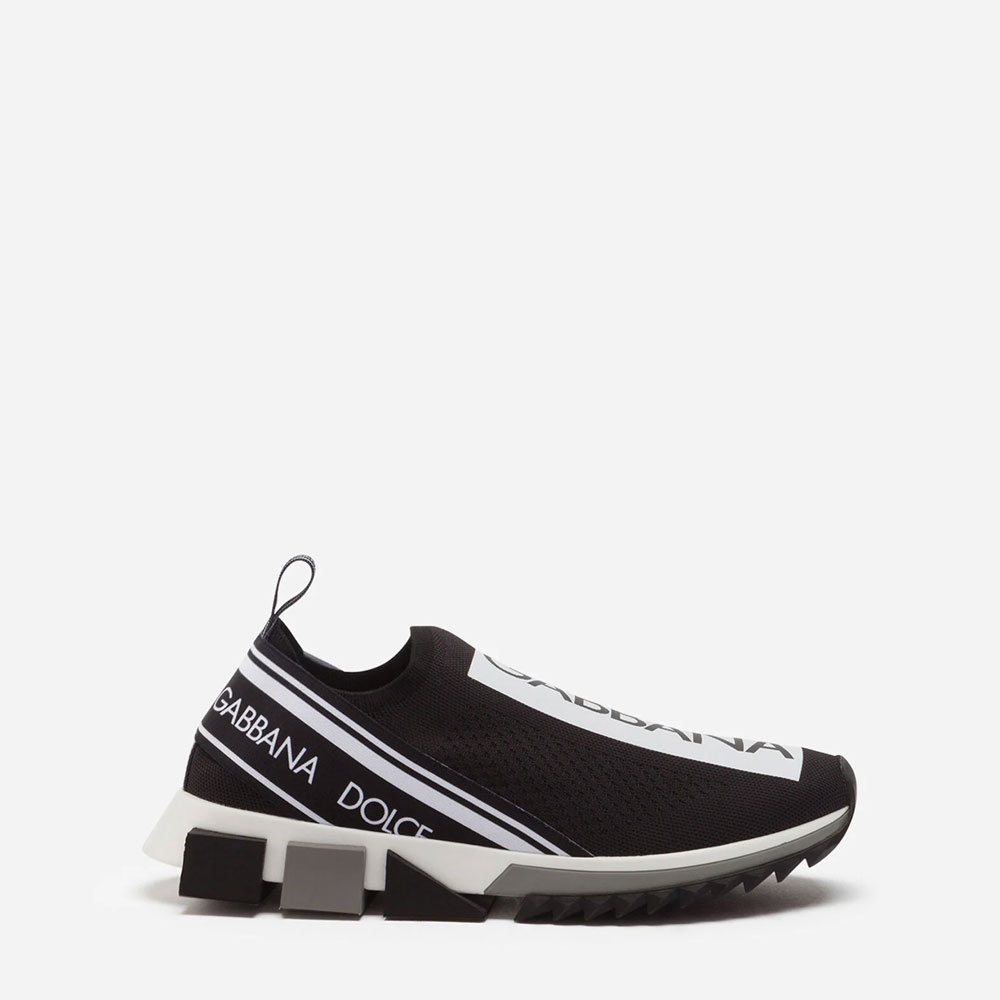 The iconic Sorrento slip-on sneakers in stretch mesh with logotape print and a sock shape embody all the distinctive details of the line. contemporary urban style. a geometric sole and the Dolce&Gabbana logo.
