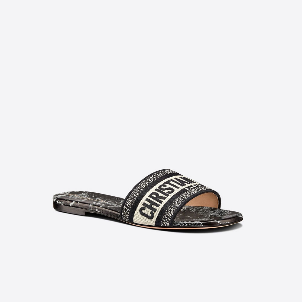 Dway Slide Black Dior Around the World Embroidered Cotton KCQ209CHR S900