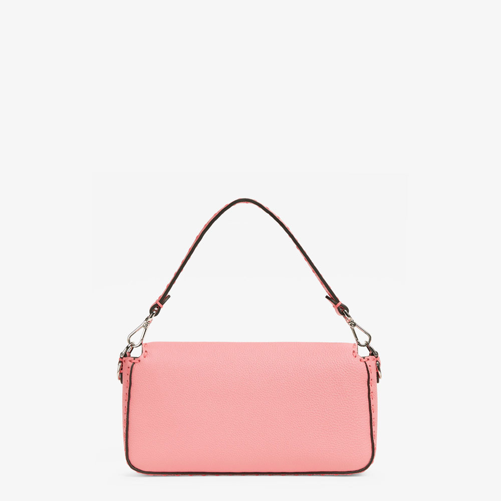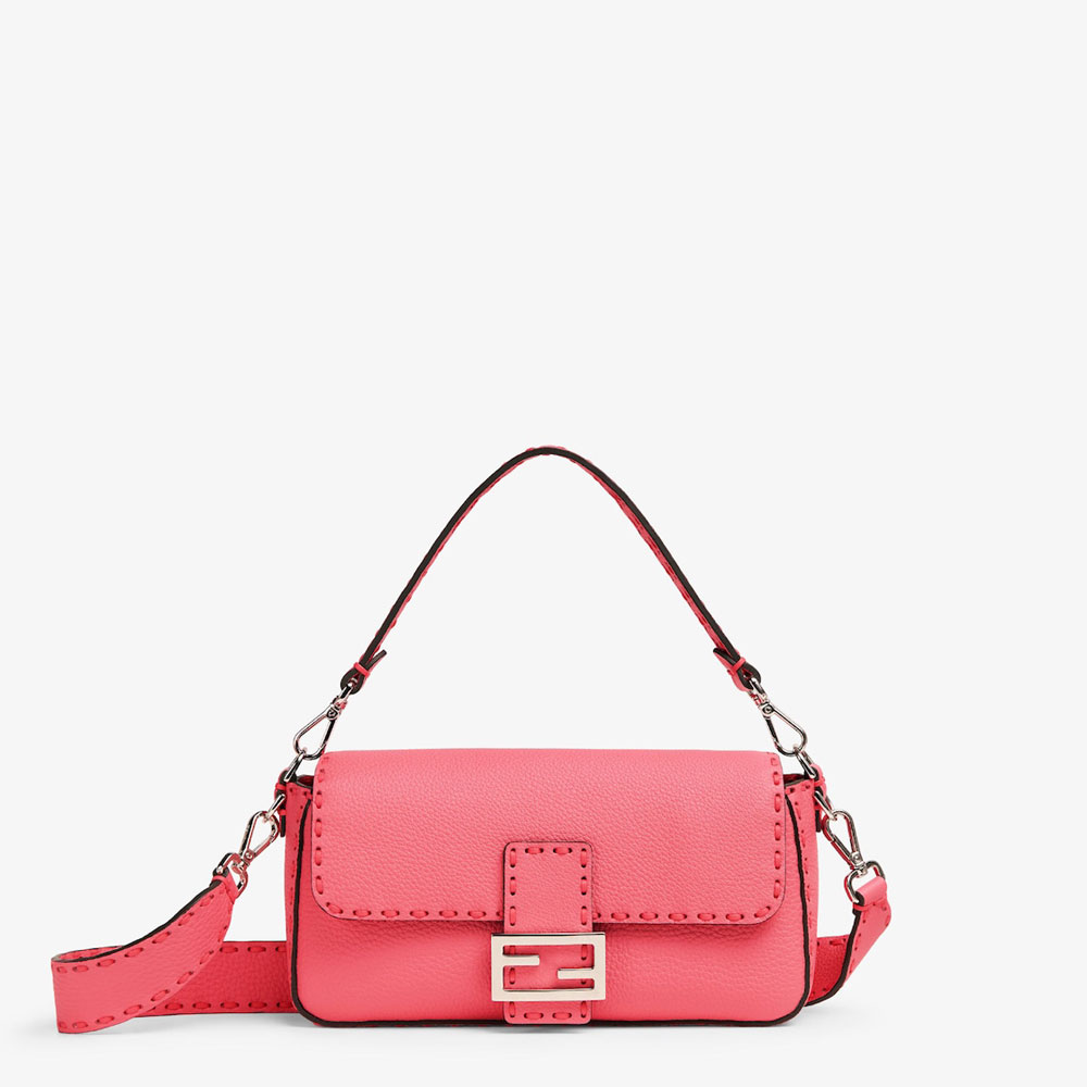 Iconic medium Baguette bag. Made of pink Cuoio Romano leather embellished by hand with matching-tone stitching. Decorated with an FF clasp.