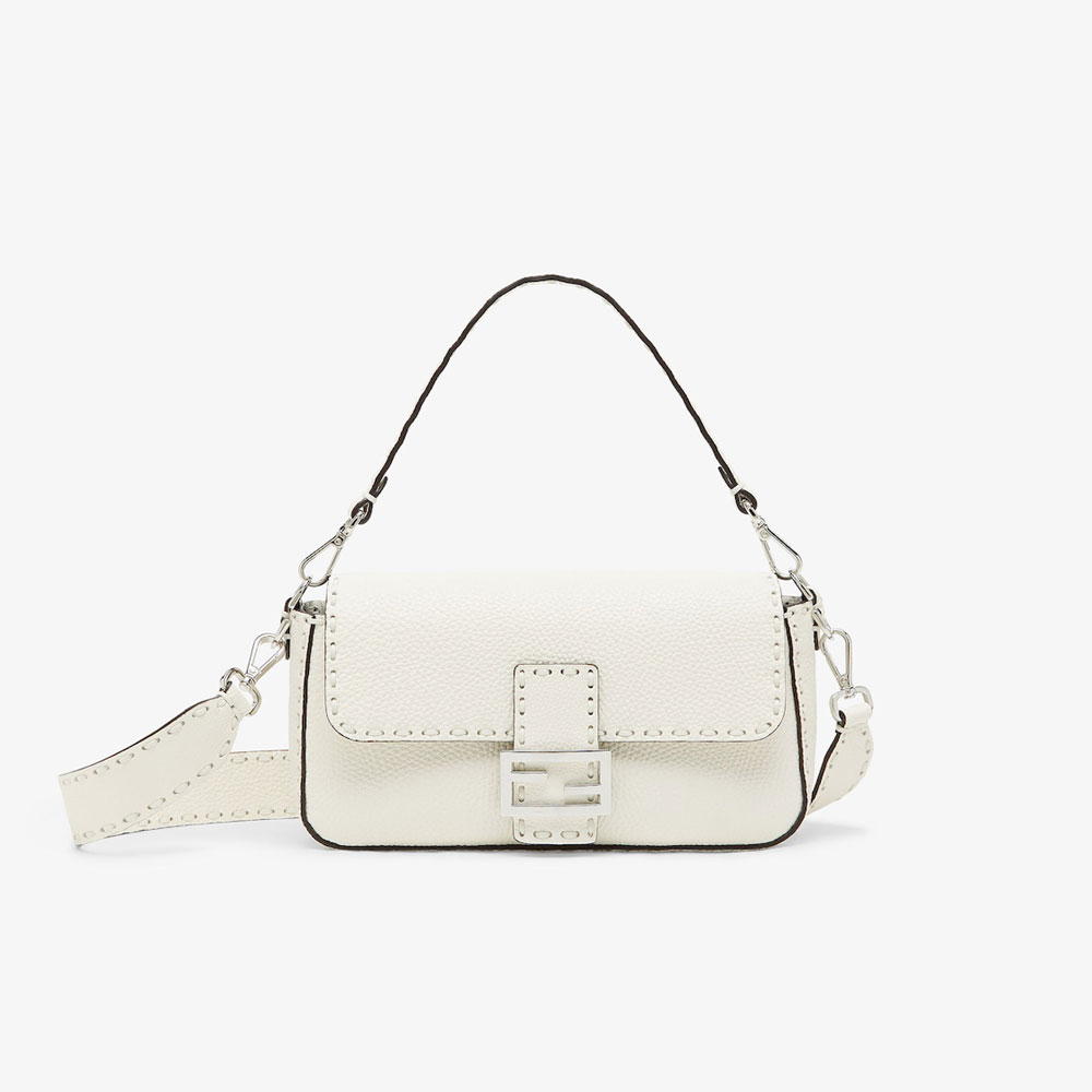 Medium iconic Baguette bag.Made of ice white Cuoio Romano leather
