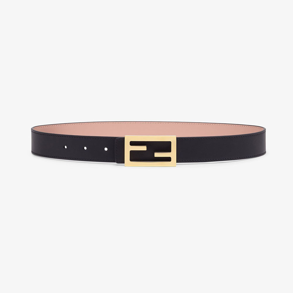 Reversible belt with FF shaped buckle and stud fastening. Made of black leather. Lined in contrasting pink leather. Gold-finish metalware.