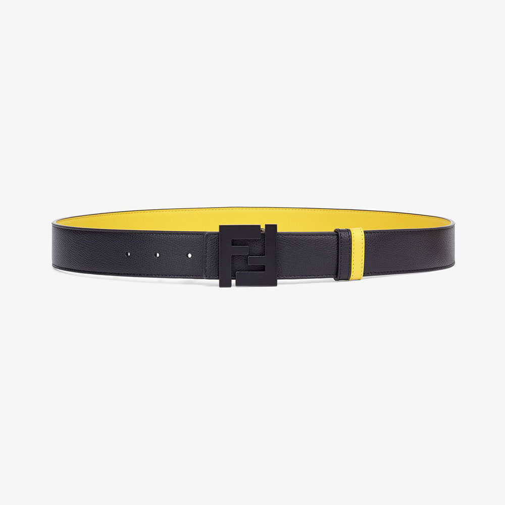 Reversible belt with two loops. FF buckle with stud fastening. Made of black leather. Leather lining in shades of yellow. Enamelled buckle matching the belt. Palladium-finish metalware.