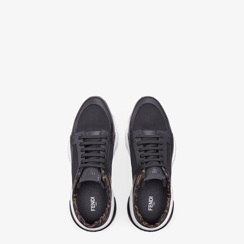 Lace-up running shoes made from black stretch tech mesh and leather. Insert in jacquard fabric with FF motif on the back of the heel. Multi-layer corrugated sole.