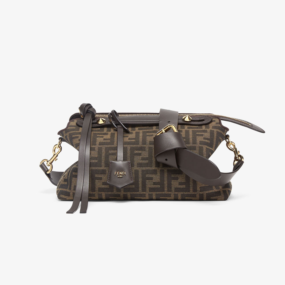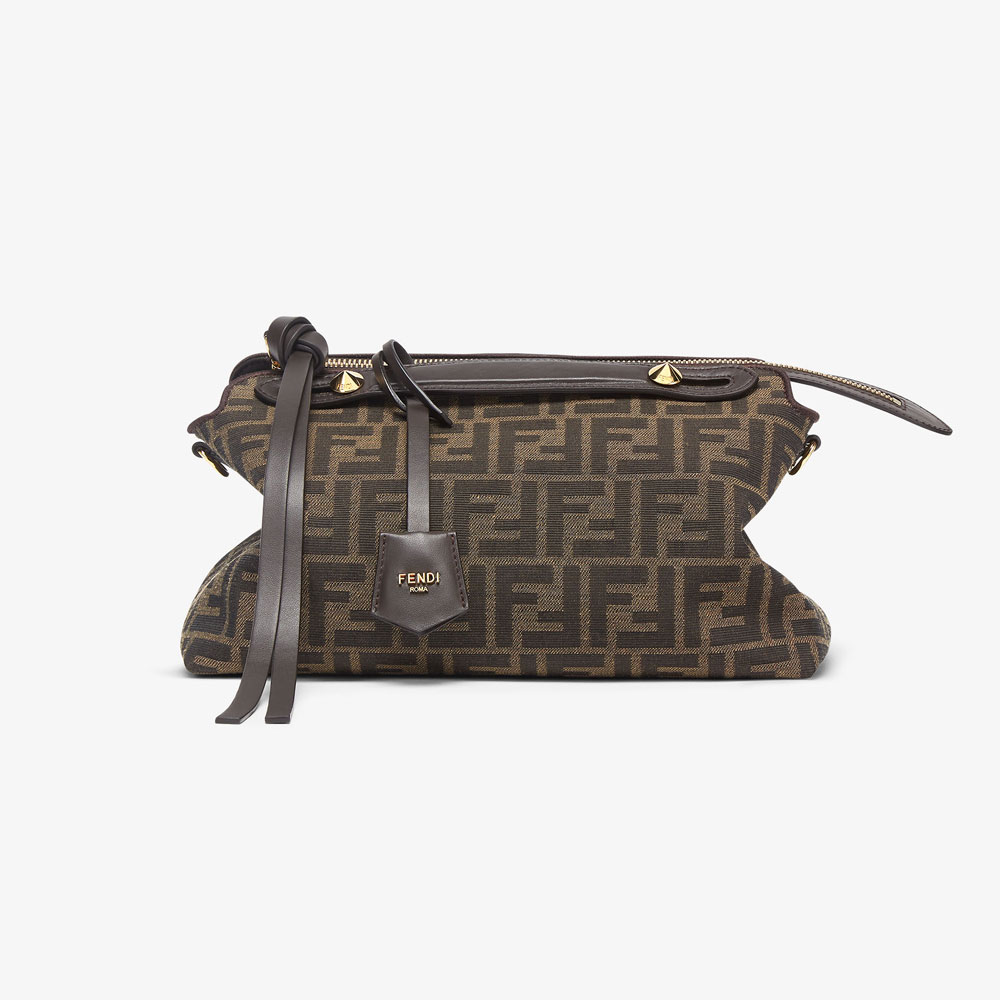 Iconic medium By The Way Soft bag, updated for the Fall Winter 2024/25 fashion show with a soft, lightweight look. Made of jacquard fabric with iconic brown FF motif.It features a fabric-lined interior, details in dark brown calfskin and gold-finish metalware.Customizable pendant and long zipper-pull with knot.